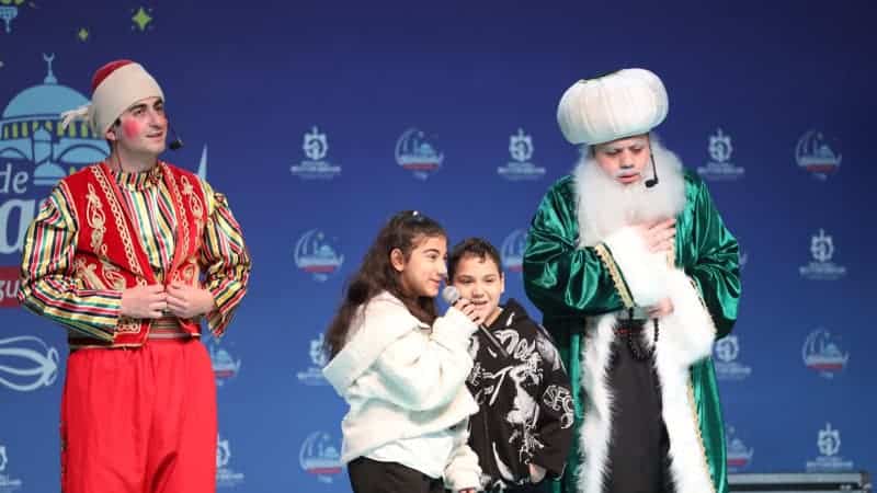 İftar yemeğinin ardından, çocuklar ve aileler için sahnede çeşitli etkinlikler düzenleniyor. Büyükşehir Belediyesi tarafından ücretsiz sunulan yemek sonrası, sahnede ilk olarak “Keloğlan İş Başında” adlı oyun sergileniyor. Ardından top çevirme oyunu ve çocukların sahneye çıkarak ilahi seslendirdiği keyifli anlar yaşanıyor. Katılımcılar, Ramazan akşamlarında hem eğleniyor hem de toplumsal dayanışmanın örneklerini görüyor.