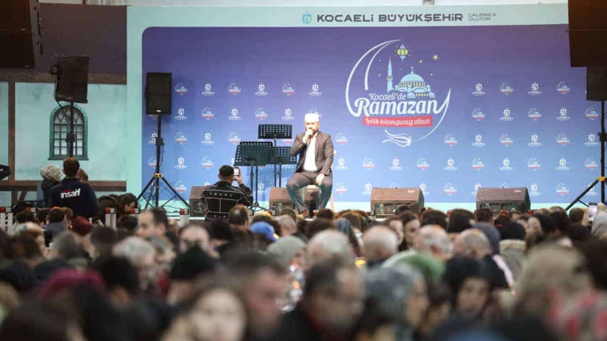 Ramazan ayının coşkusu, Kocaeli Büyükşehir Belediyesi’nin İzmit Kent Meydanı’nda kurduğu Ramazan Çadırı ile vatandaşlara unutulmaz anlar yaşatıyor. Her akşam yaklaşık 1.500 kişi aynı anda oruç açarken, çadırda düzenlenen etkinlikler eski Ramazan’ların sıcaklığını yeniden hissettiriyor.