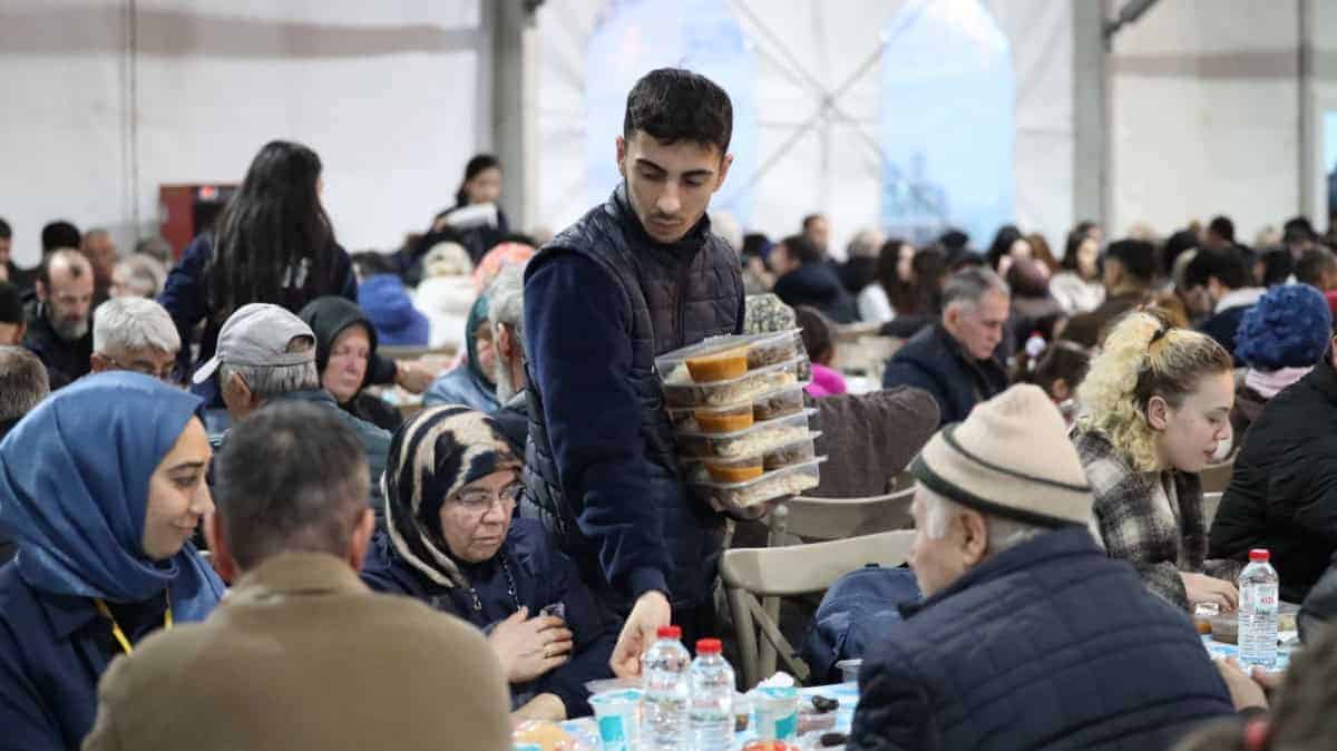 İftar saatine yaklaşırken, Ramazan Çadırı önünde uzun kuyruklar oluşuyor. Çocuklar, gençler ve aileler, Ramazan’ın manevi atmosferini birlikte yaşama fırsatı buluyor. Yoğun ilgi nedeniyle çadırda yer kalmadığında, dış alanda da iftar sofraları kuruluyor. Her yaştan vatandaşın buluştuğu kardeşlik sofrasında, birlik, beraberlik ve paylaşma duyguları öne çıkıyor. Oluşan sıcak ve samimi ortam, Ramazan’ın ruhunu en iyi şekilde yansıtıyor.